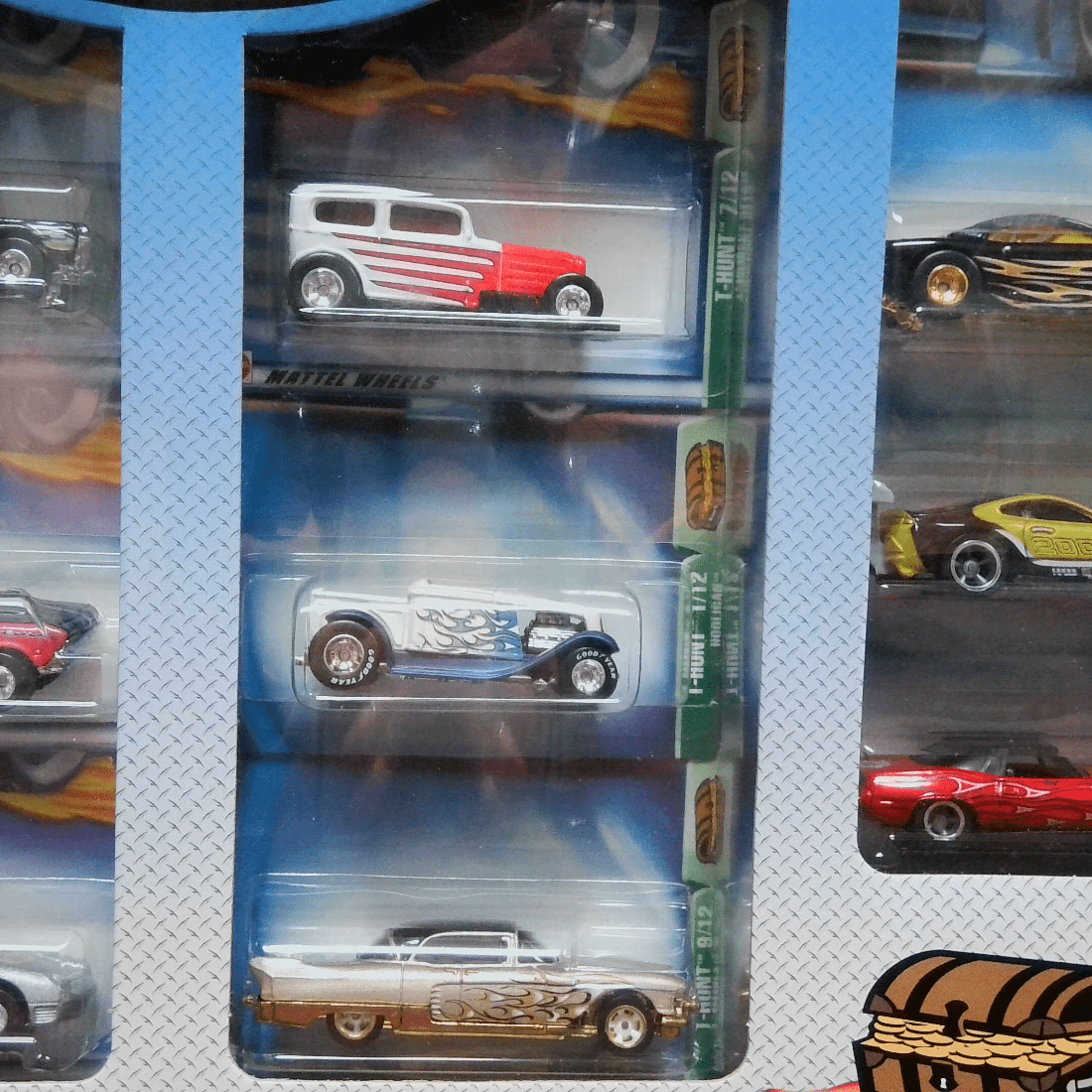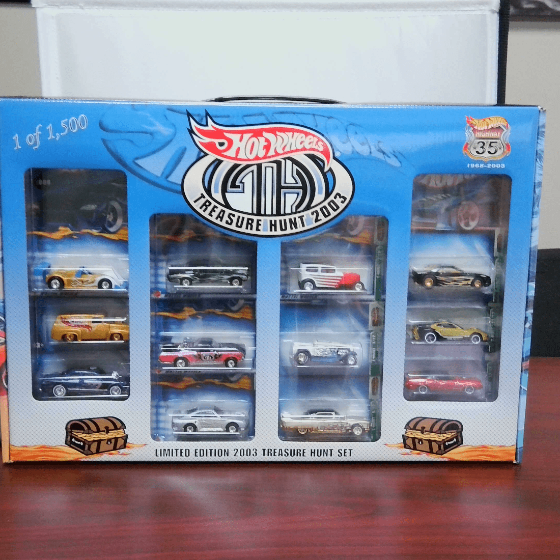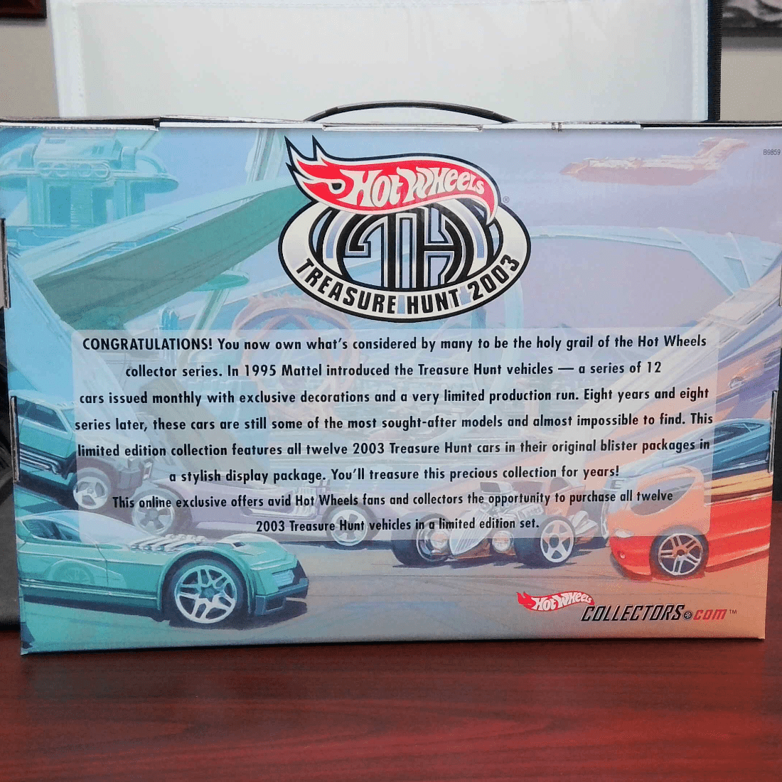 You now own what’s considered to by many to be the holy grail of the Hot Wheels® collector series. In 1995 Mattel introduced Treasure Hunt vehicles – a series of 12 cars issued monthly with exclusive decorations and a very limited production run. Eight years and eight series later, these cars are still some of the most sought-after models and almost impossible to find. This limited edition collection features all twelve 2003 Treasure Hunt cars in their original blister packages in a stylish display package. You’ll treasure this precious collection for years! This online exclusive offers avid Hot Wheels fans and collectors the opportunity to purchase all twelve 2003 Treasure Hunt vehicles in a limited edition set.